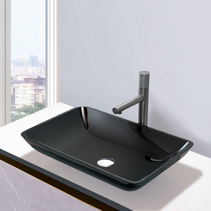 Alto lavabo solido rettangolare temperato nero lucido del piano d'appoggio della ciotola di vetro del bacino